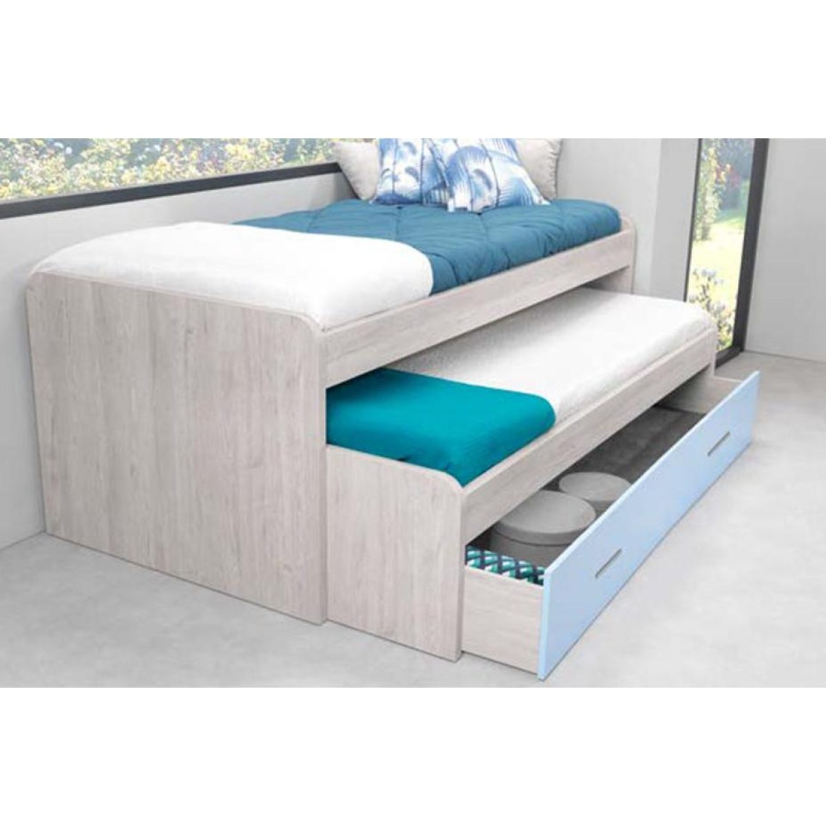 Cama Tripla: para colchão 195 × 90 (2º cama 190 x 90 / Gavetão 183 x 88)