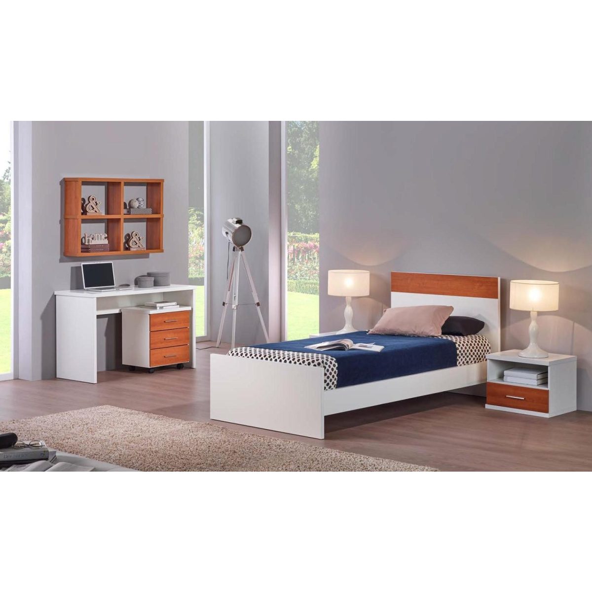 Quarto Juvenil M28 Dimensões: Cama: Para colchão 195*95 Mesa de Cabeceira: L 53 / A 44 / P 40 Secretária: L 120 / A 182 / P 55 Várias cores ou combinações de cores disponíveis. O Preço inclui apenas a cama. Aproveite para adicionar estrado e colchão à sua encomenda.