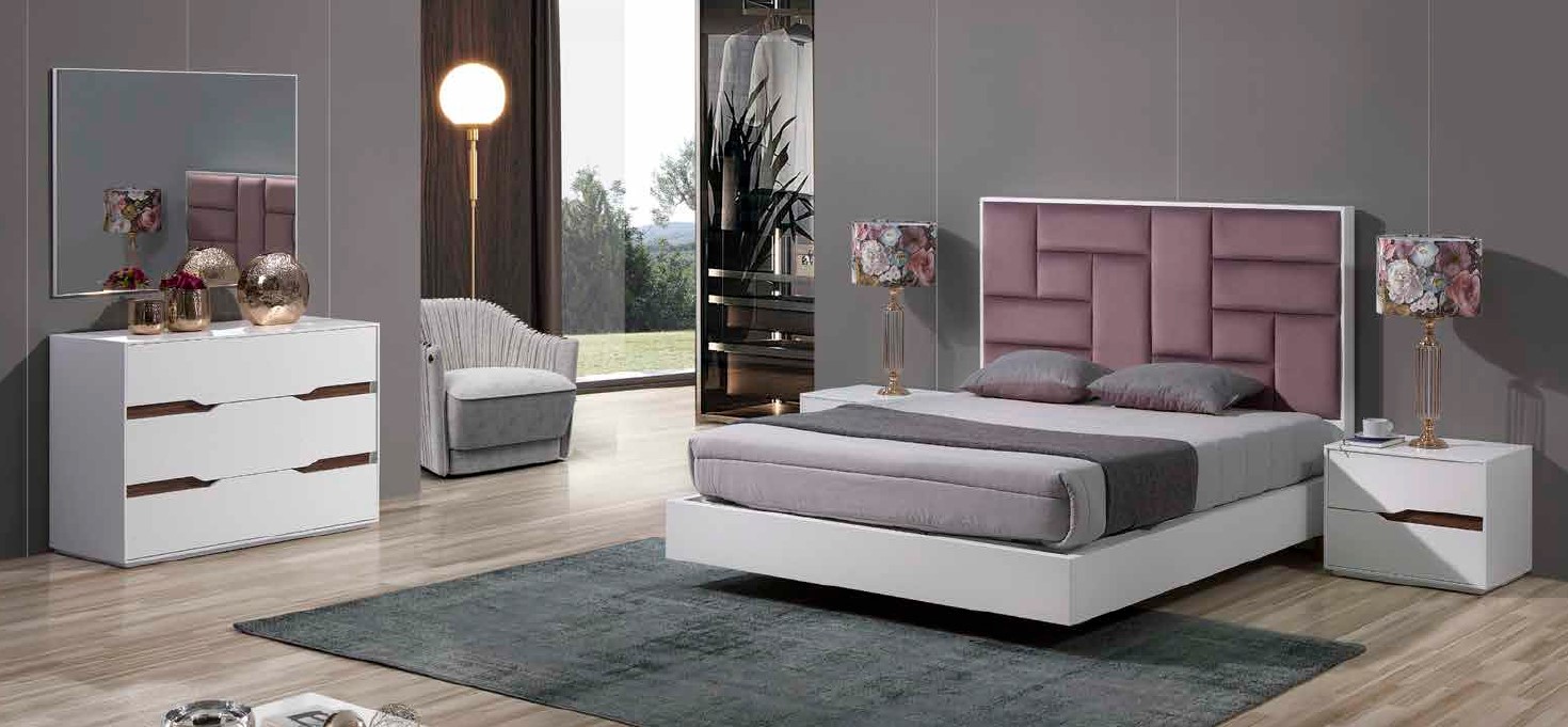 Quarto moderno e versátil com acabamentos em lacado branco. Fabricamos com outro tipo de acabamentos e cores.