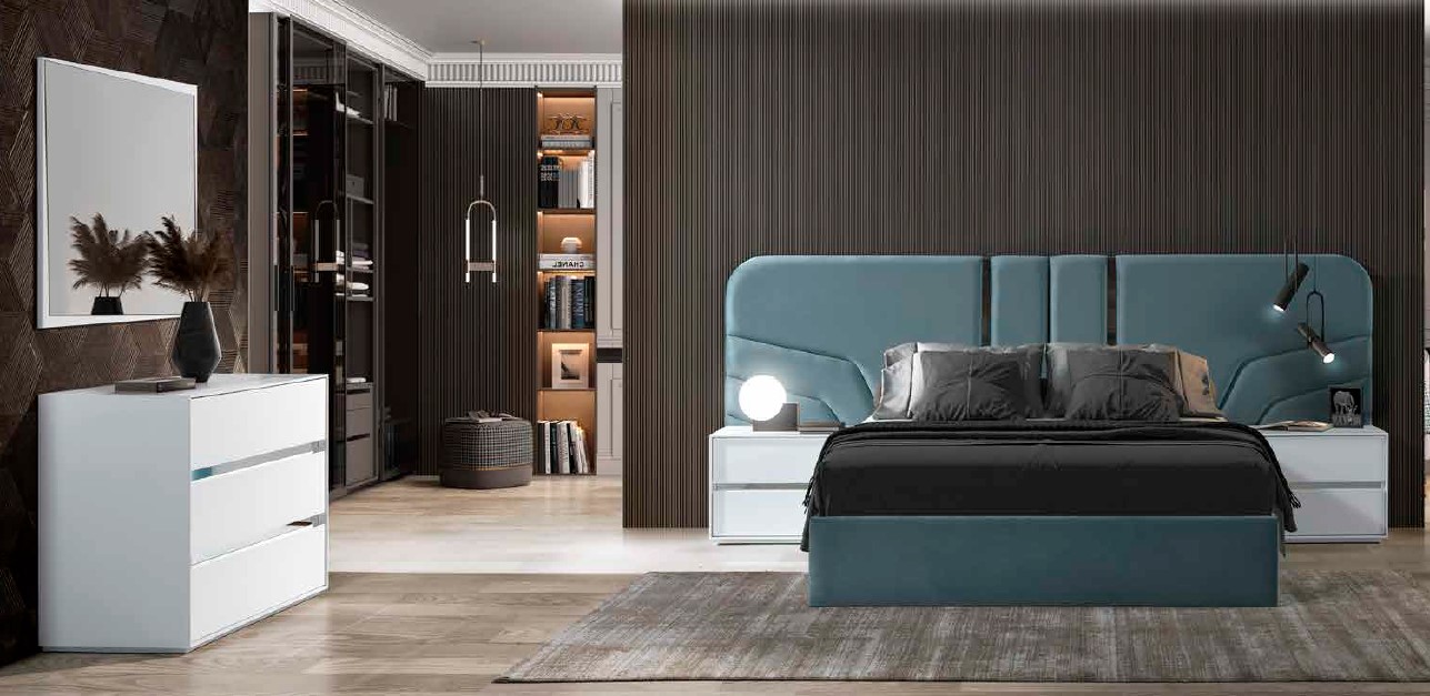 Quarto moderno e versátil com acabamentos em lacado branco. Fabricamos com outro tipo de acabamentos e cores.