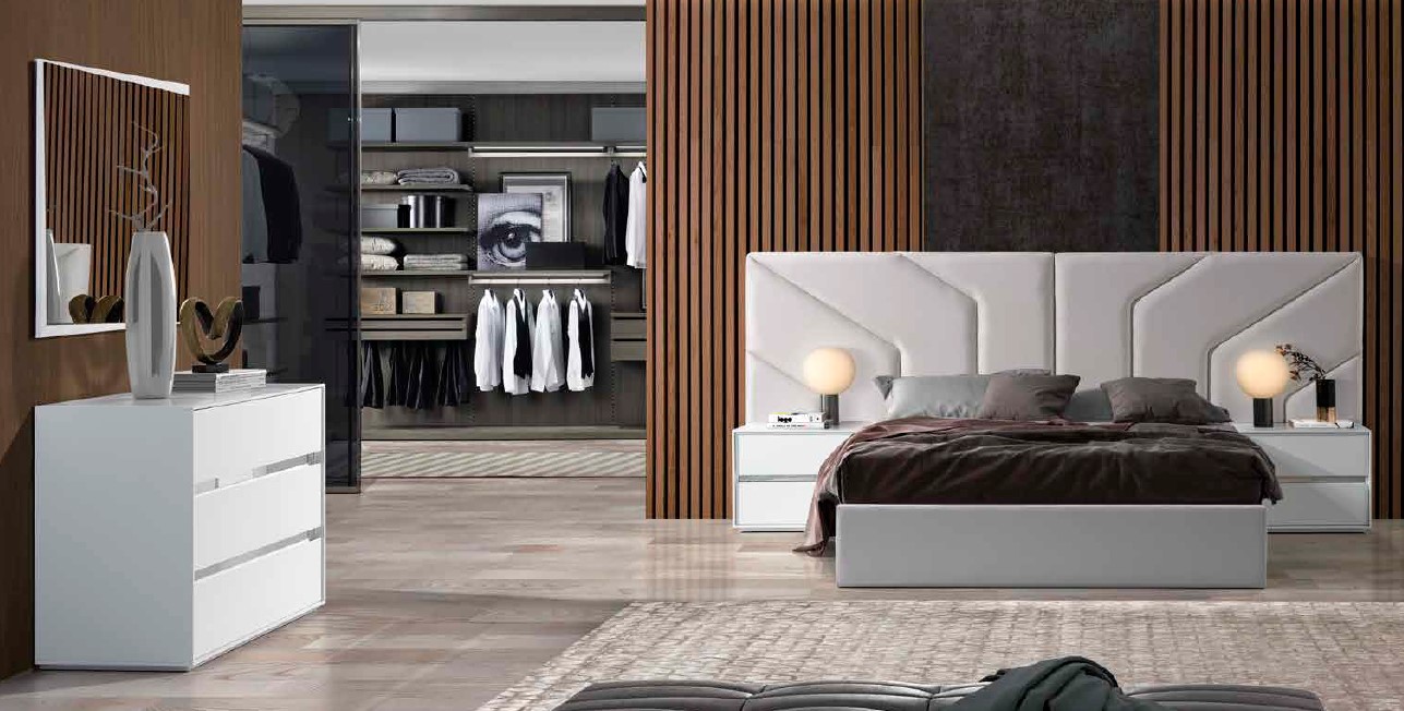 Quarto moderno e versátil com acabamentos em lacado branco. Fabricamos com outro tipo de acabamentos e cores.