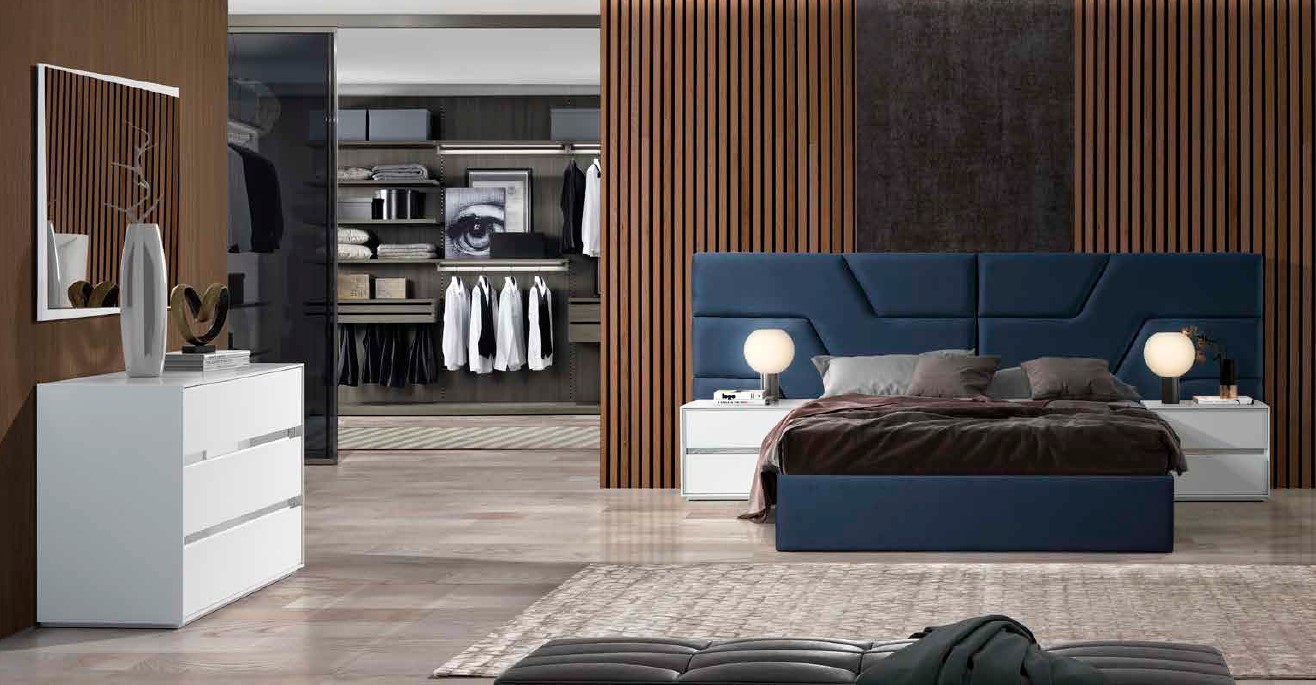 Quarto moderno e versátil com acabamentos em lacado branco. Fabricamos com outro tipo de acabamentos e cores.