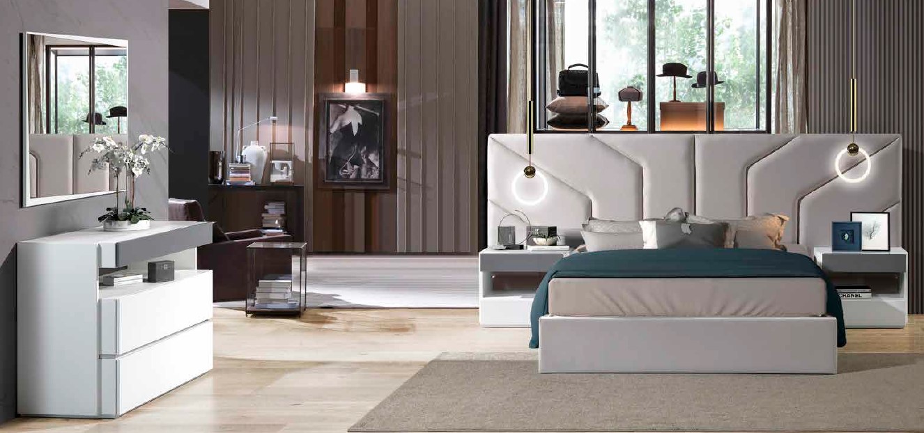 Quarto moderno e versátil com acabamentos em lacado branco. Fabricamos com outro tipo de acabamentos e cores.