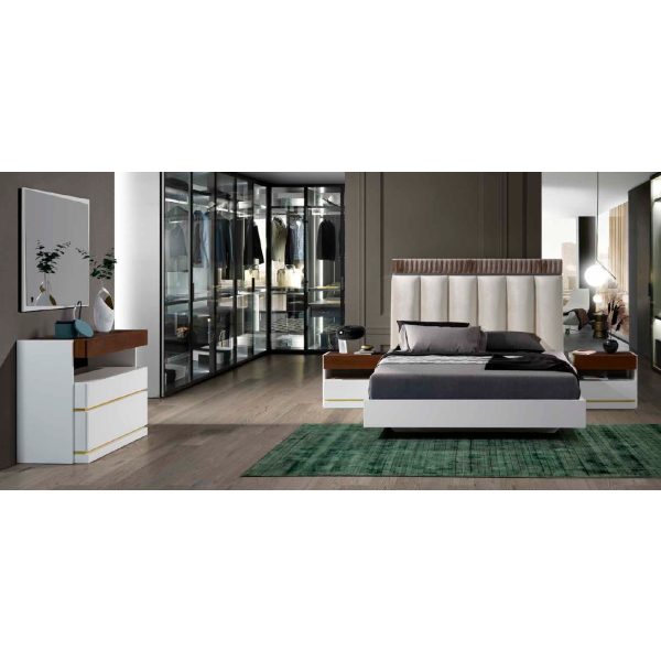 Quarto moderno e versátil com acabamentos em lacado branco. Fabricamos com outro tipo de acabamentos e cores.