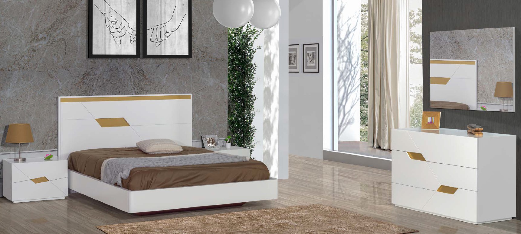 Cama + 2 mesas cabeceira, Cama + 2 mesas cabeceira + cómoda, Cama + 2 mesas cabeceira + cómoda + moldura |
