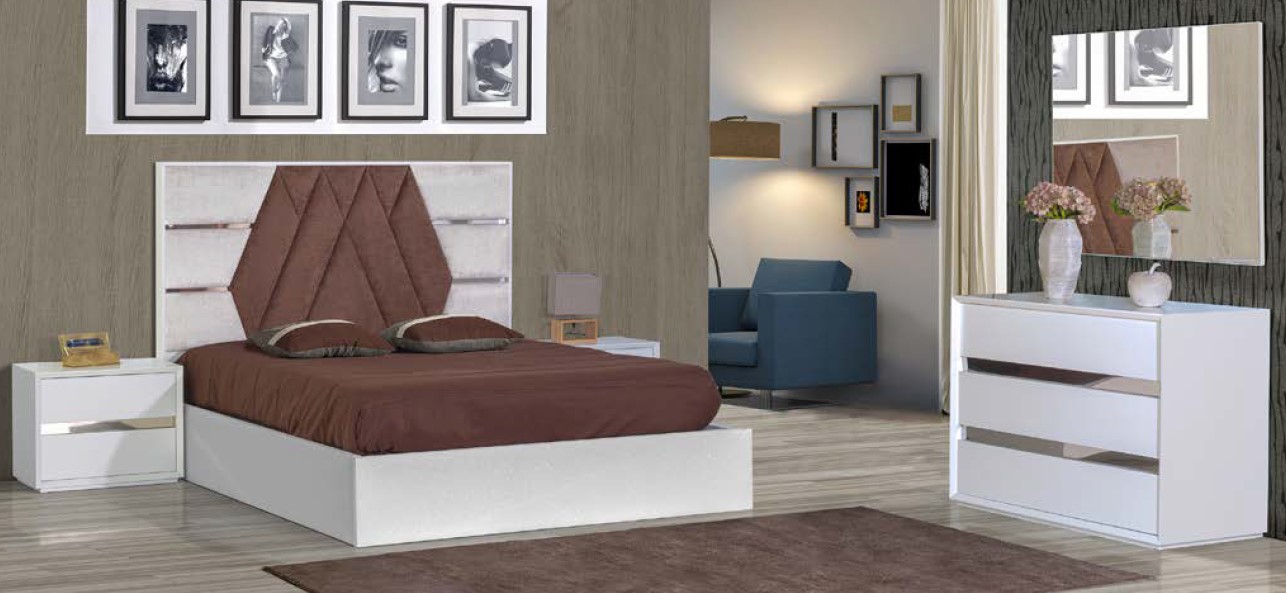 Quarto Dubai. Dimensões: Cama: L 177 / P 206 / A 95 (para colchão 195*150) Mesa cabeceira: L 53 /