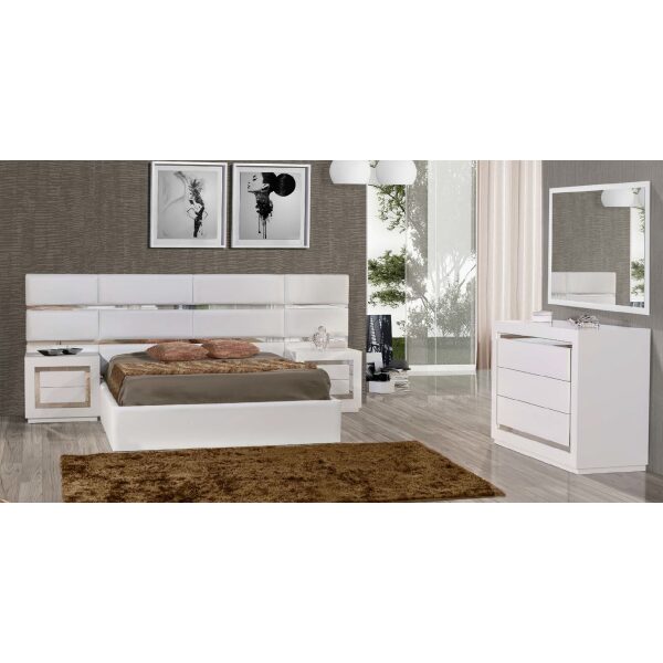Quarto Toquio. Dimensões: Cama: L 162 / P 206 / A 110 (para colchão 195*150) Mesa cabeceira: L 53 /