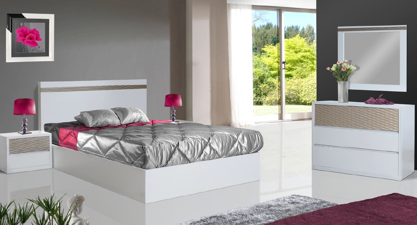 Quarto moderno e versátil com acabamentos em lacado branco. Fabricamos com outro tipo de acabamentos e cores.