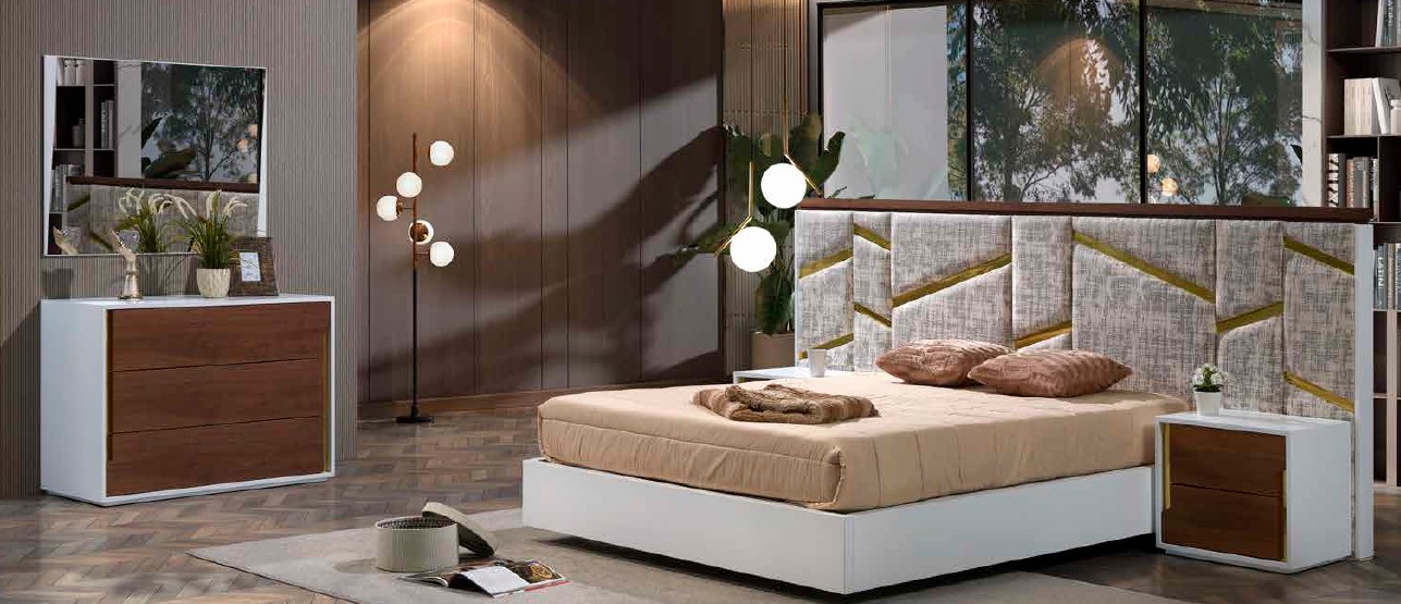 Quarto moderno e versátil com acabamentos em lacado branco. Fabricamos com outro tipo de acabamentos e cores.