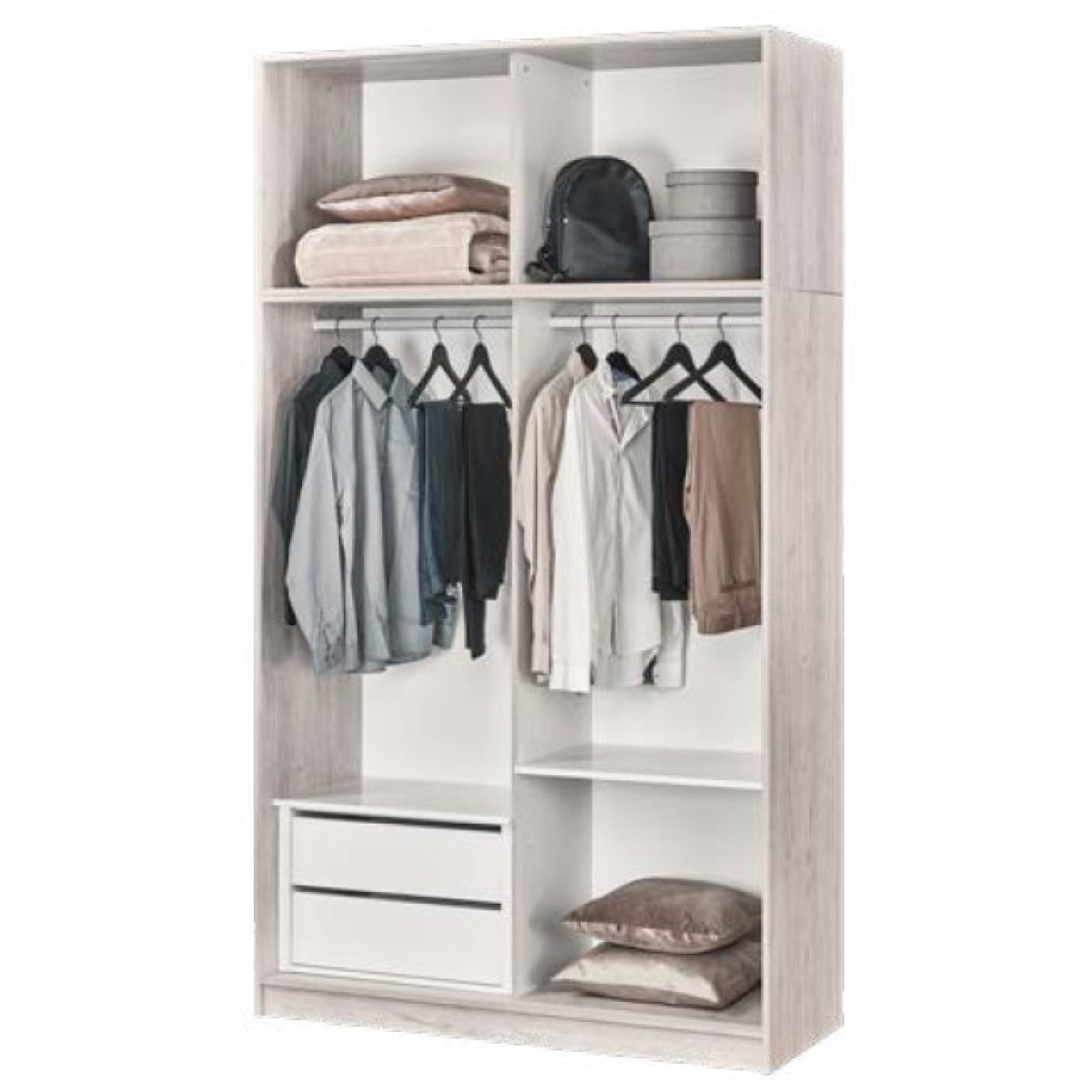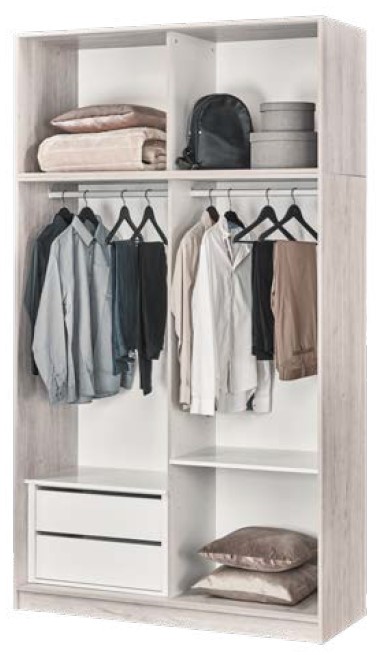 O valor indicado inclui apenas o Roupeiro de 2 portas. Caso necessite de espelho interior nas portas ou o suplemento superior basta seleccionar nas opções. Vários acabamentos e cores disponíveis.