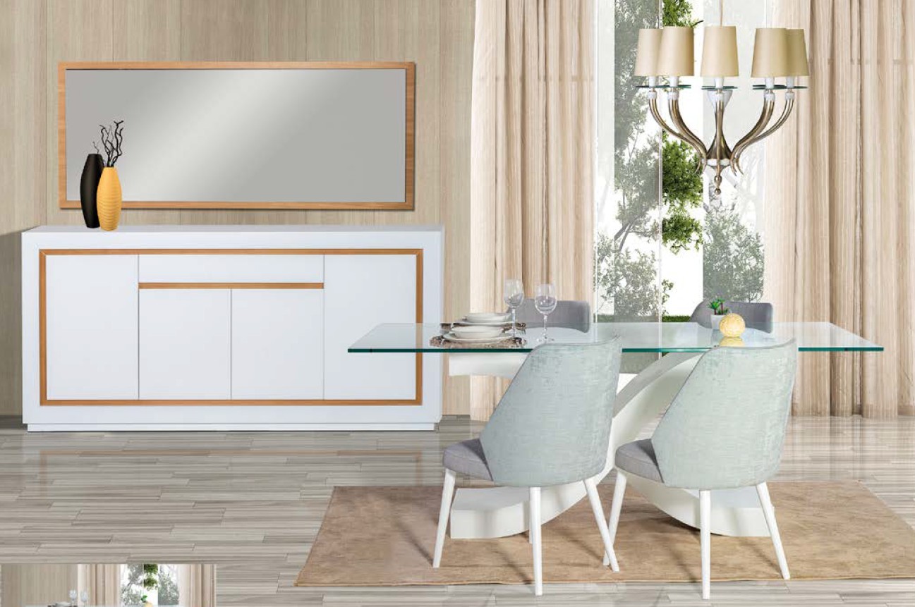 Sala de Jantar Due 21. Dimensões: Aparador 4 portas + 2 gavetas: L 205 / P 50 / A 1000Espelho