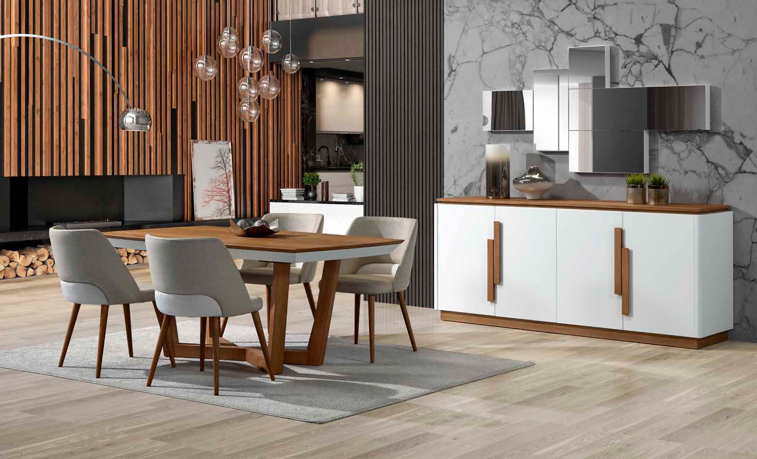 Sala de Jantar moderna e versátil com acabamentos em lacado branco.