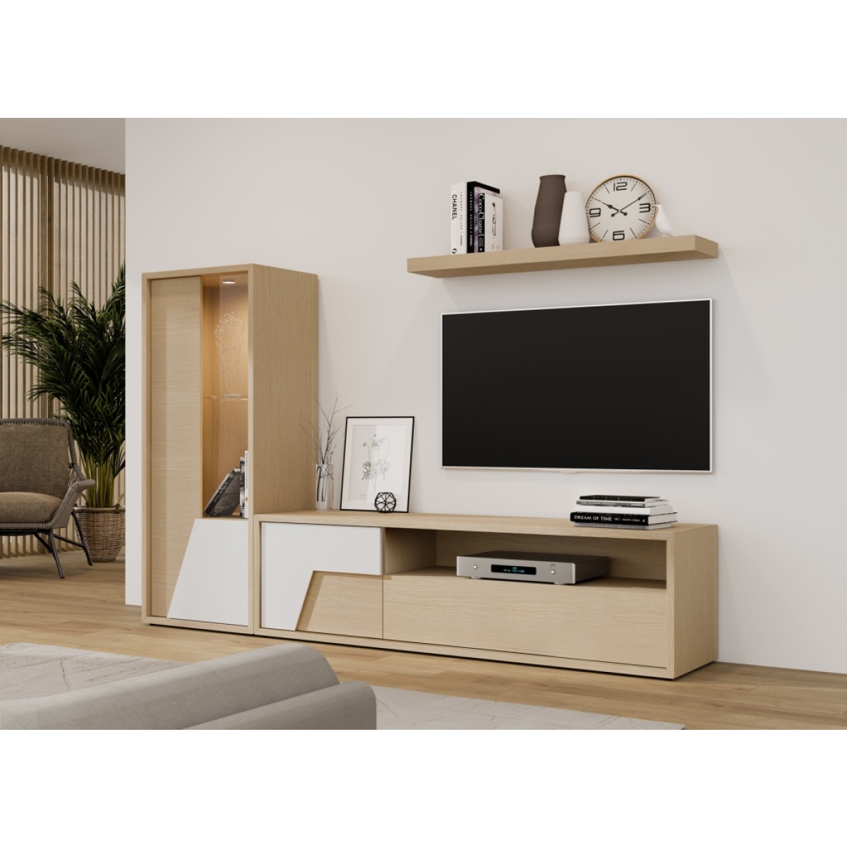 Dimensões: Base Tv: L 180 / P 40 / A 50 Elemento c/porta: L 100 / P 40 / A 144 Alçado parede: L 160 / P 30 / A 44 Mesa centro: L 90 / P 55 / A 47 Podemos vender tudo em separado. Vários acabamentos disponíveis.